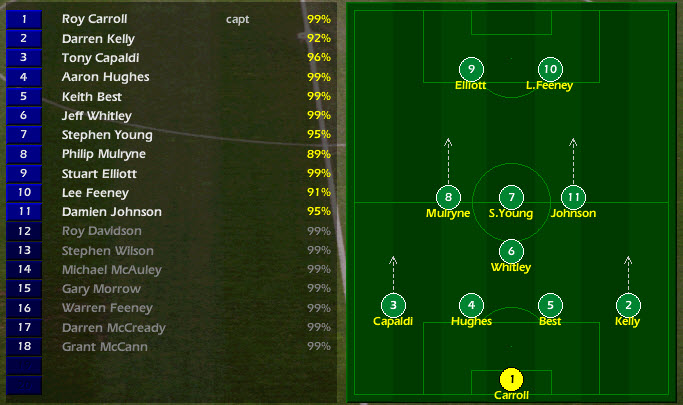 It takes 15 minutes for Brazil to find the back of the net, Ronaldo with his 47th international goal. 1-0 to Brazil at the half, we’ve not been totally out of it despite the early goal! A minute into the second-half Jeff Whitley gets himself a straight red and our task is made all the harder. Despite the numerical disadvantage Northern Ireland, against all odds, pull themselves back into this tie thanks to a tap-in from Stuart Elliott, 1-1! Brazil regain the lead just six minutes later through marauding wingback Dede. It’s a Man of the Match performance for Roy Carroll and a creditable performance from the team as a whole!