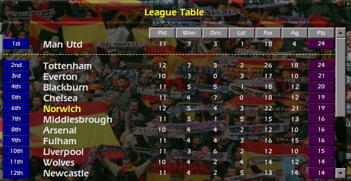 That leaves us 6th after 12 games, though already the games played column is a scattergun. Only Bolton have a worse defence than us, but only Spurs score more goals. Some things never change.