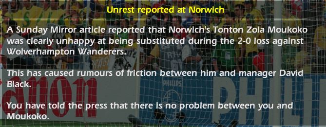 As luck would have it our next game is Chelsea at home. It’s an absolute car crash of a match with bodies strewn across the Carrow Road field. Cries of MEDIC can be heard every few minutes before Steve Carr takes it too far and gets sent off. It’s all very dramatic and I’m relieved to get out with a point. Moukoko is a sub and plays the final 5 minutes. That’ll teach him.