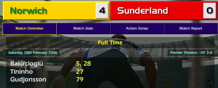 The return match at Carrow Road follows a similar pattern. We lead, we’re pegged back, the lads sort it out. Take that, Louis Saha.